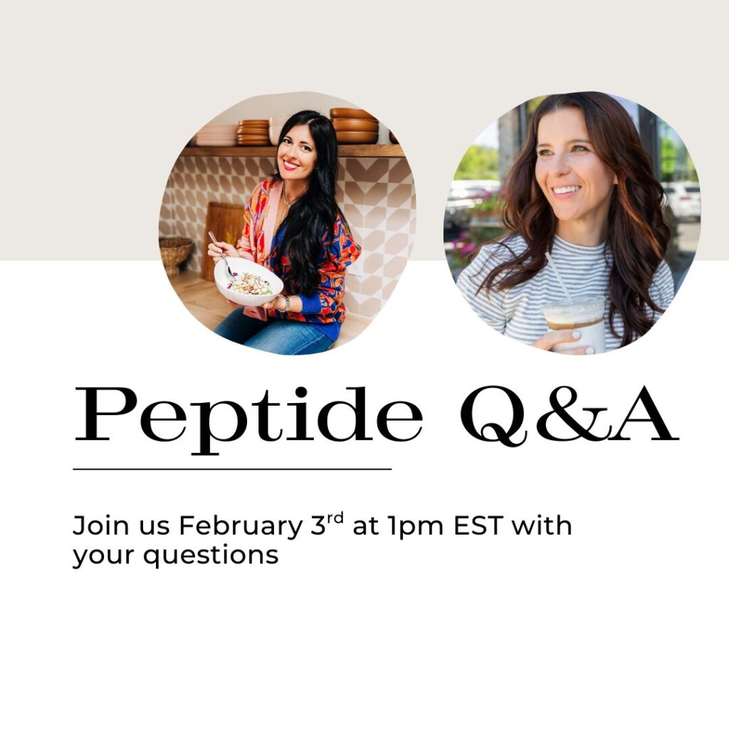 If you’ve been hearing more and more about peptides and feeling curious (but also cautious) you’re not alone. That’s exactly why my friend Tina and I are hosting a Peptides Q&A Chat: a chill yet educational conversation between two practitioners who have seen meaningful results personally and in practice when peptides are used appropriately and responsibly.