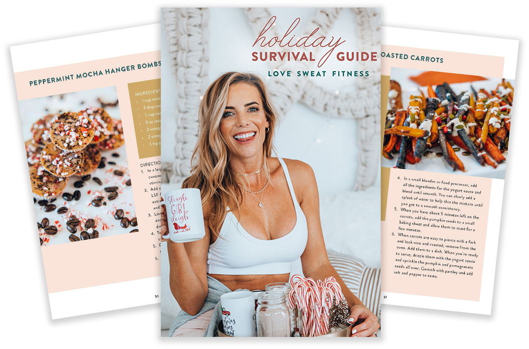 Check out my Holiday Survival Guide & Recipe Book for more Holiday recipes you can enjoy all holiday season long!! It is the ultimate guide to surviving and thriving this holiday season! It has over 30 healthy holiday recipes, on-the-go travel workouts & tips, self-care essentials to help you de-stress and soak up all the feels, DIY gift ideas, and even things like shopping checklists and budget trackers!
