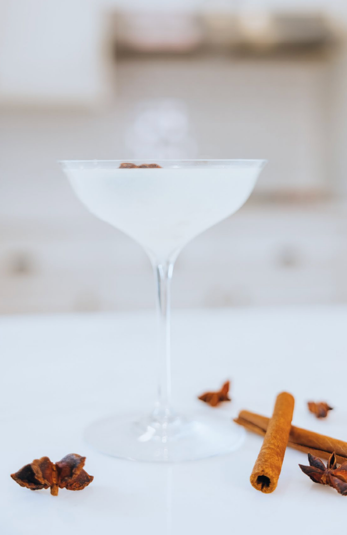 4. Shake her up and serve in a cute coupe glass with a sprig of thyme and star anise to garnish.